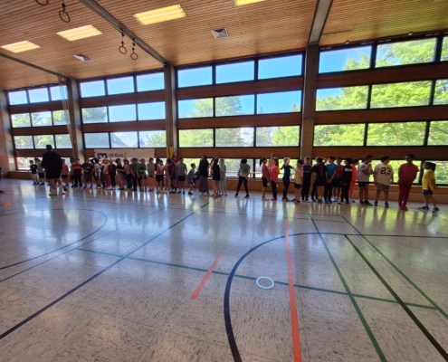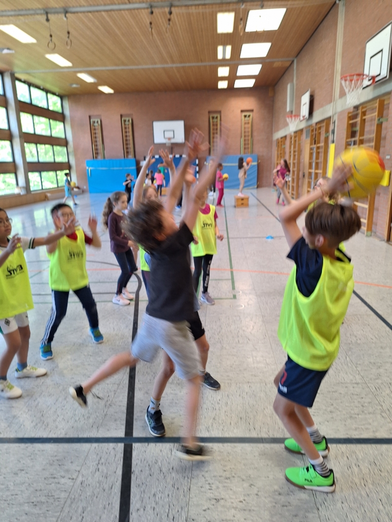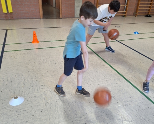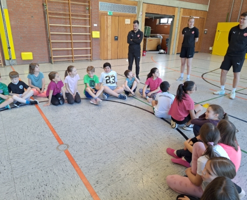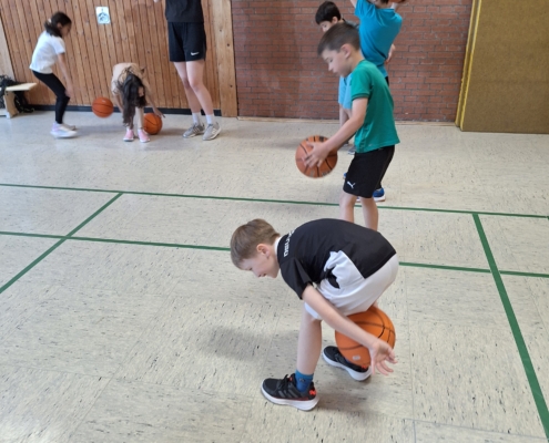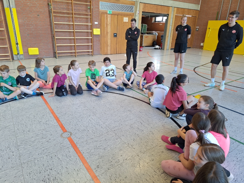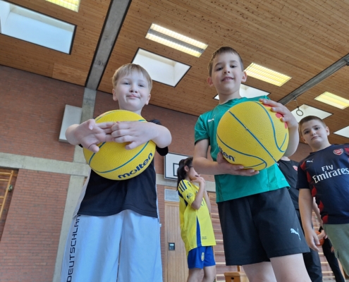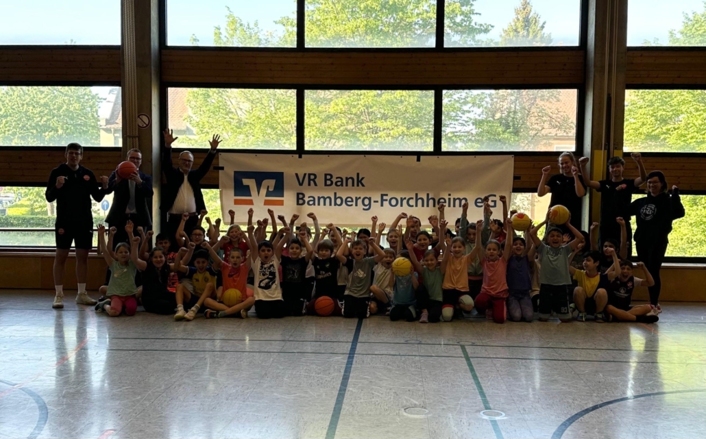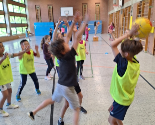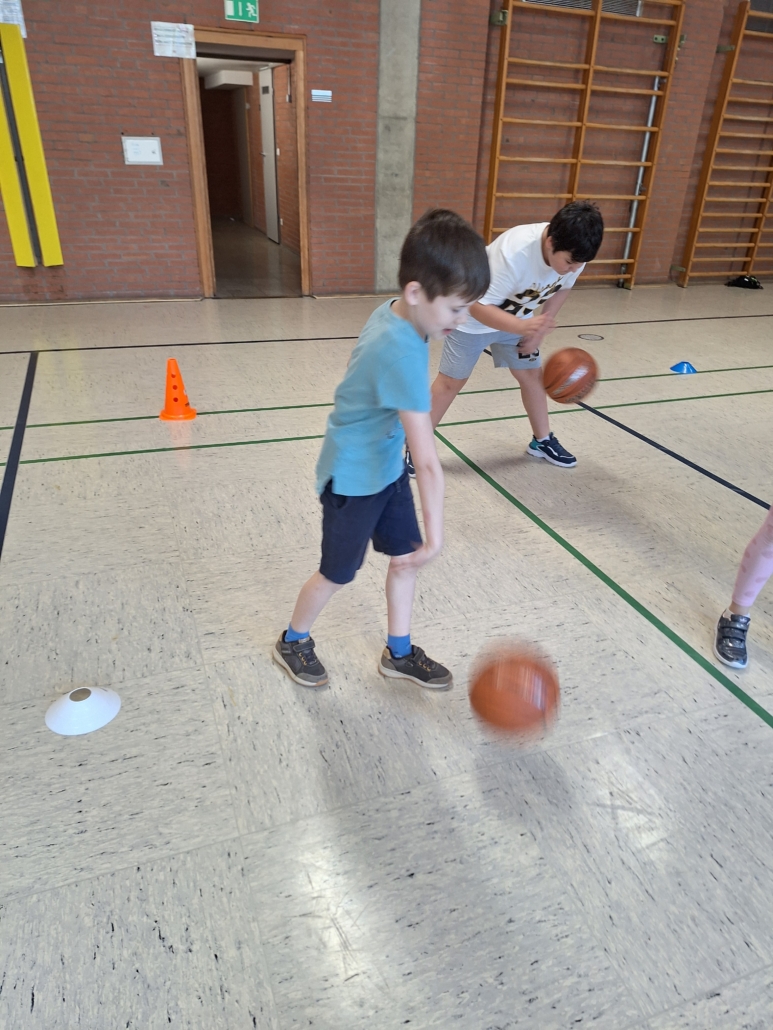 Die Trainerinnen und Trainer von Freak City Bamberg e.V. brachten viel Schwung mit und zeigten den Kindern verschiedene Übungen rund ums Passen, Werfen und Ballkontrolle. Spielerisch und mit viel Spaß lernten die Schülerinnen und Schüler erste Grundlagen des Basketballs kennen – für viele ein ganz neues Erlebnis!