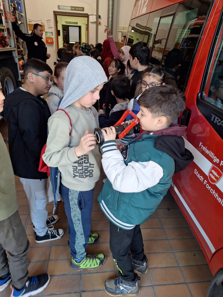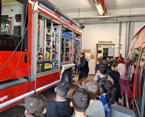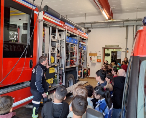 Im April unternahmen die Klassen 3aG und 3d einen spannenden Ausflug zur Freiwilligen Feuerwehr Forchheim. Vor Ort wurden die Schülerinnen und Schüler herzlich empfangen und bekamen einen eindrucksvollen Einblick in die vielfältigen Aufgaben der Feuerwehr. So konnte auch für eine spätere HSU-Probe nochmals das Gelernte wiederholt werden.