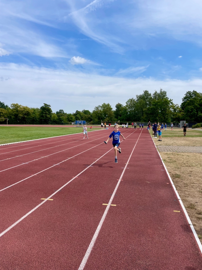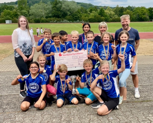 Am Montag, den 14. Juli 2025, nahm unsere Schule mit großem Erfolg am Leichtathletik-Wettkampf in Forchheim teil. Acht Mannschaften traten bei bestem Sommerwetter gegeneinander an – mit dabei: unsere besten 13 Sportlerinnen und Sportler aus der dritten und vierten Klasse, die sich zuvor bei den Bundesjugendspielen qualifiziert hatten.