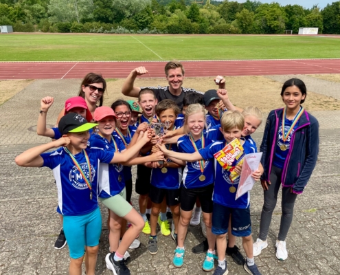 Das Team, bestehend aus sechs Jungen und sieben Mädchen, zeigte beeindruckenden Teamgeist, sportlichen Ehrgeiz und jede Menge Fairness. Mit großem Einsatz kämpften sie sich durch die Disziplinen – und am Ende stand fest: Unsere Schule holt den ersten Platz!