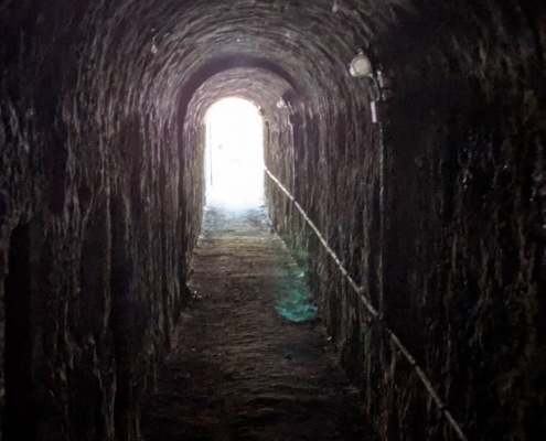 - in den Geheimgang der Stadtmauer, in der wir Luftlöcher, Tropfsteine, Spinnen entdecken konnten