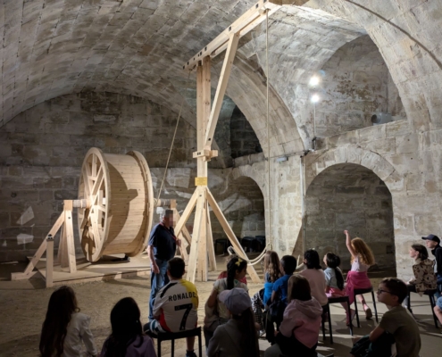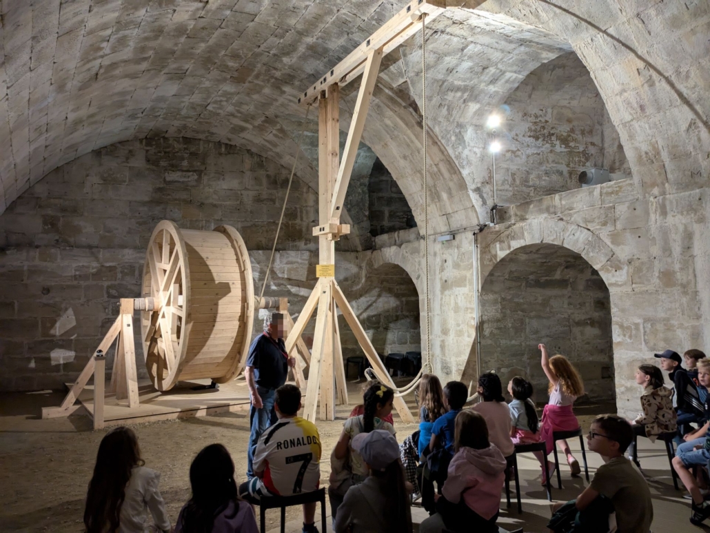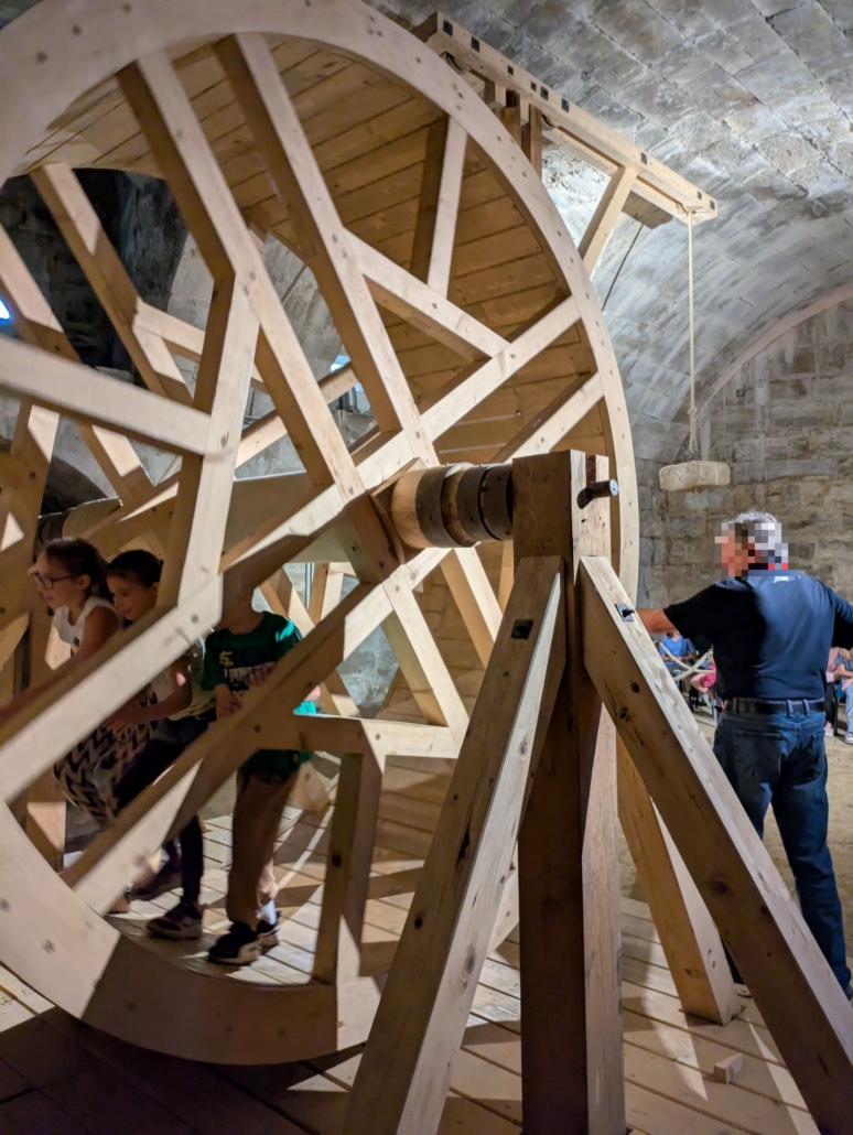 - in die St. Veits-Bastion, wo alle den Tretradkran ausprobieren durften