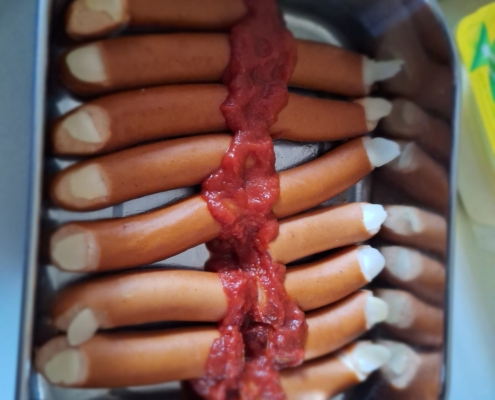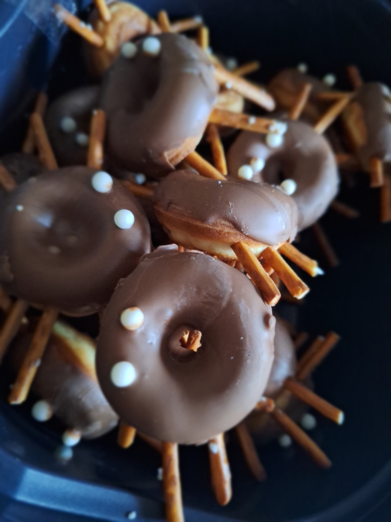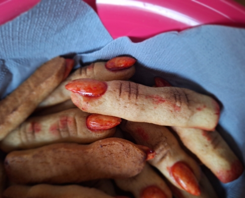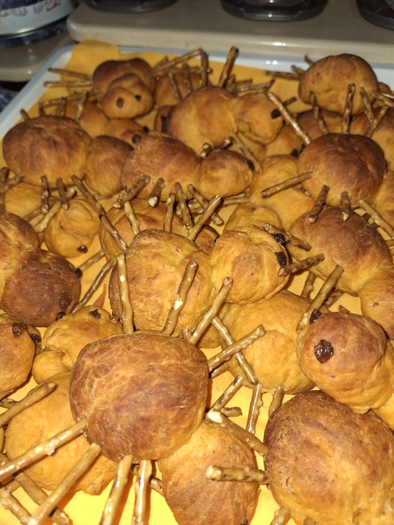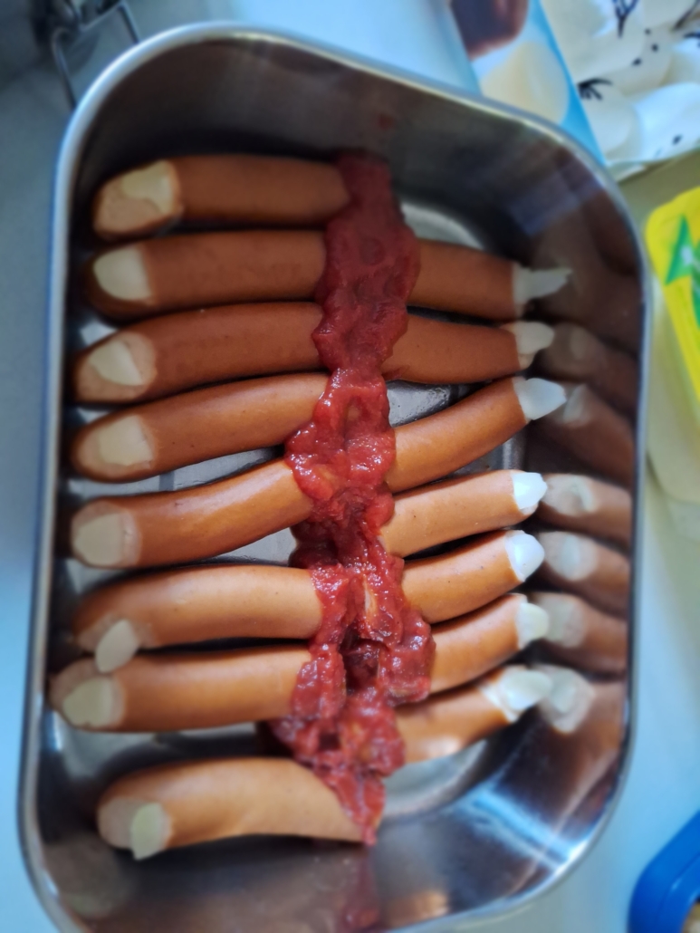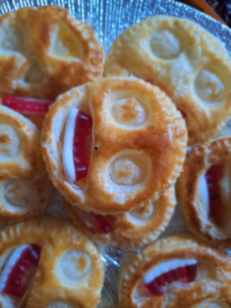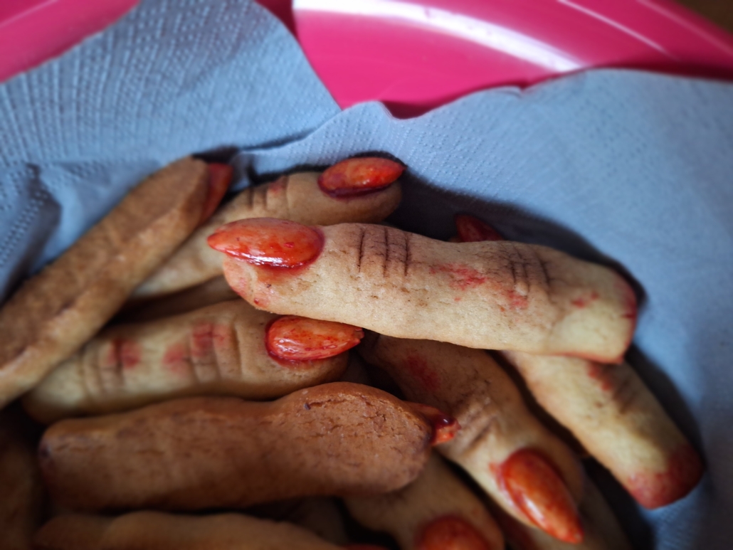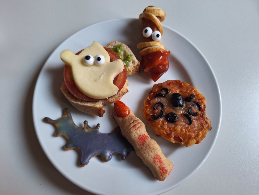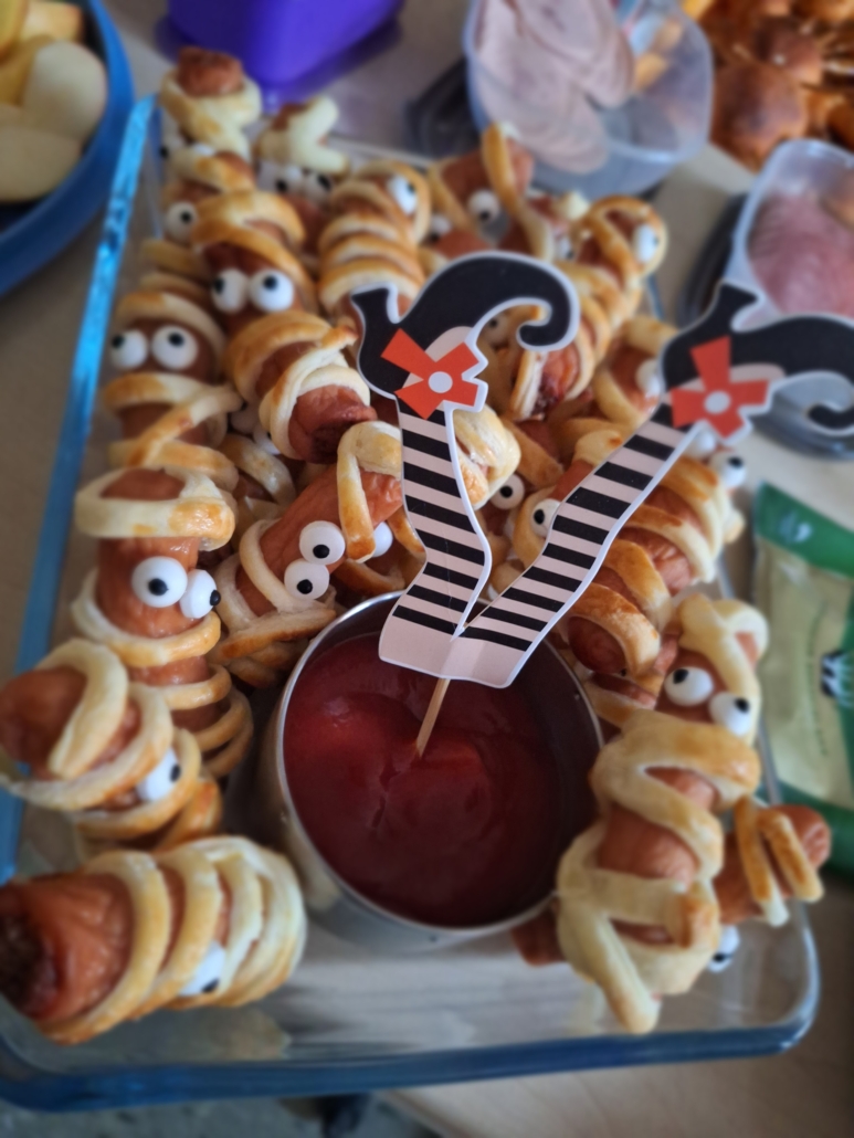 Gespenster-Muffins, Blut-Orangensaft, knackige „Fingerwürstchen“, „Spinnen-Donuts“ und viele weitere fantasievolle Speisen, die nicht nur furchterregend aussahen, sondern auch köstlich schmeckten.