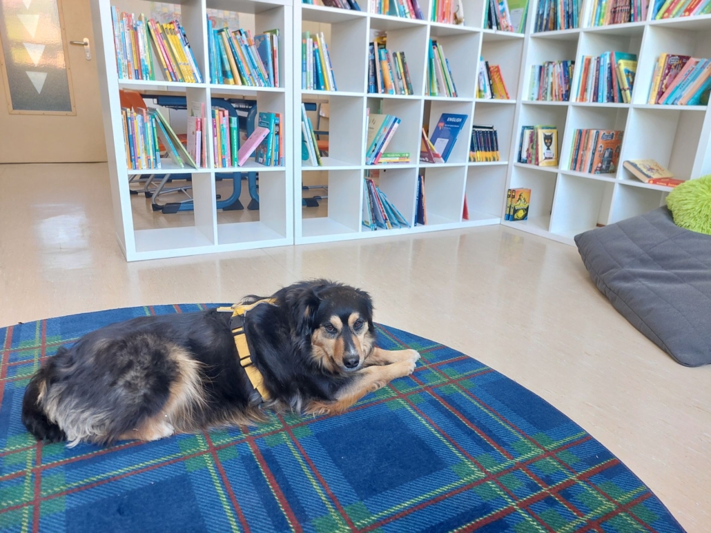 Seit Kurzem haben wir an unserer Schule einen ganz besonderen neuen „Mitarbeiter“: Lesehund Kaya!