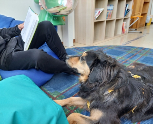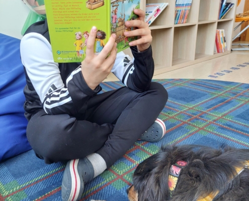 Ein Lesehund hilft Kindern dabei, ihre Lesefähigkeiten in einer ruhigen und stressfreien Umgebung zu verbessern. Beim Vorlesen an Kaya fühlen sich viele Kinder entspannter und trauen sich mehr zu – ganz ohne Angst von Fehlern oder Bewertung.