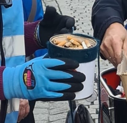 - Sehr auffällig waren die vielen Zigarettenkippen, die wir teilweise nur mühsam aus den Ritzen des Kopfsteinpflasters puhlen konnten.