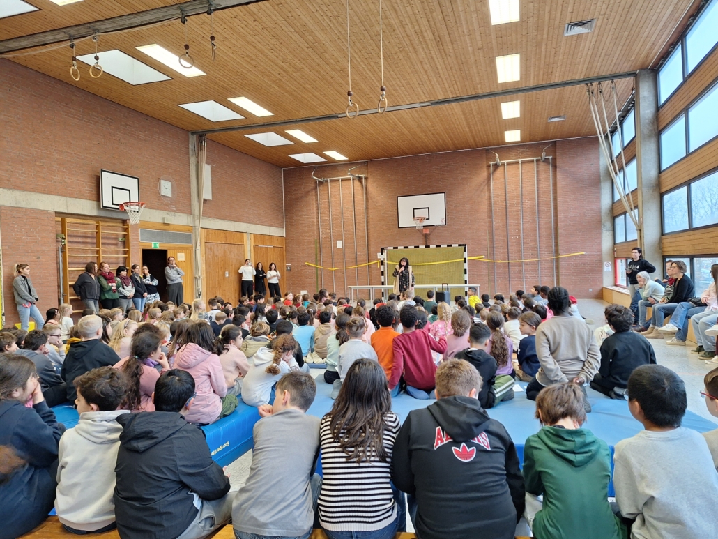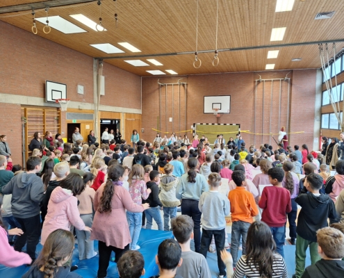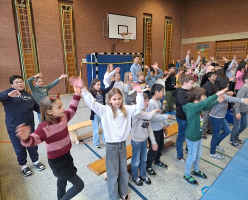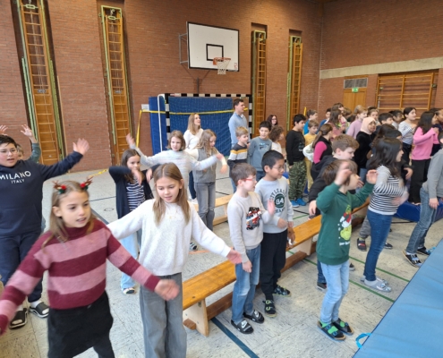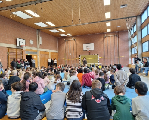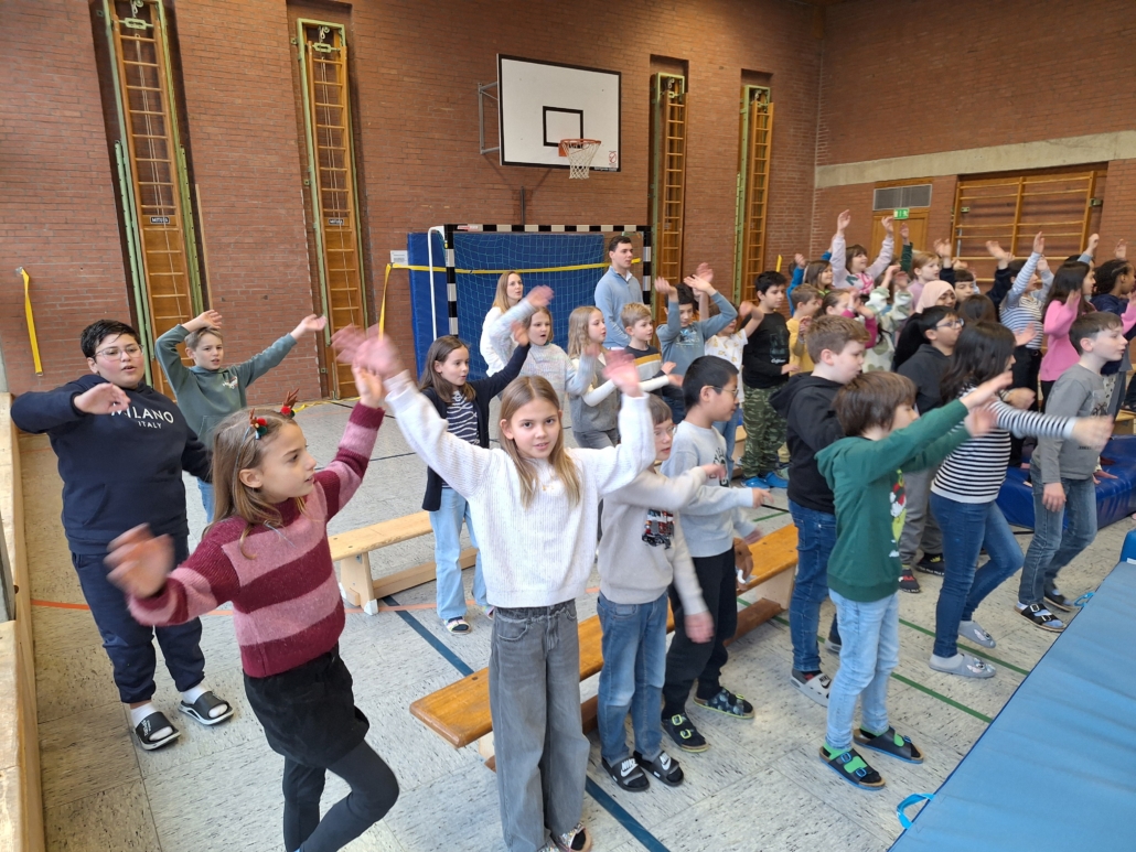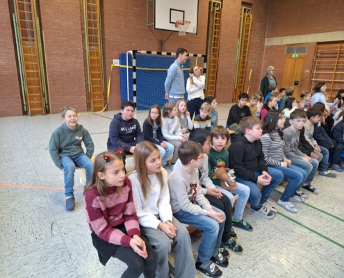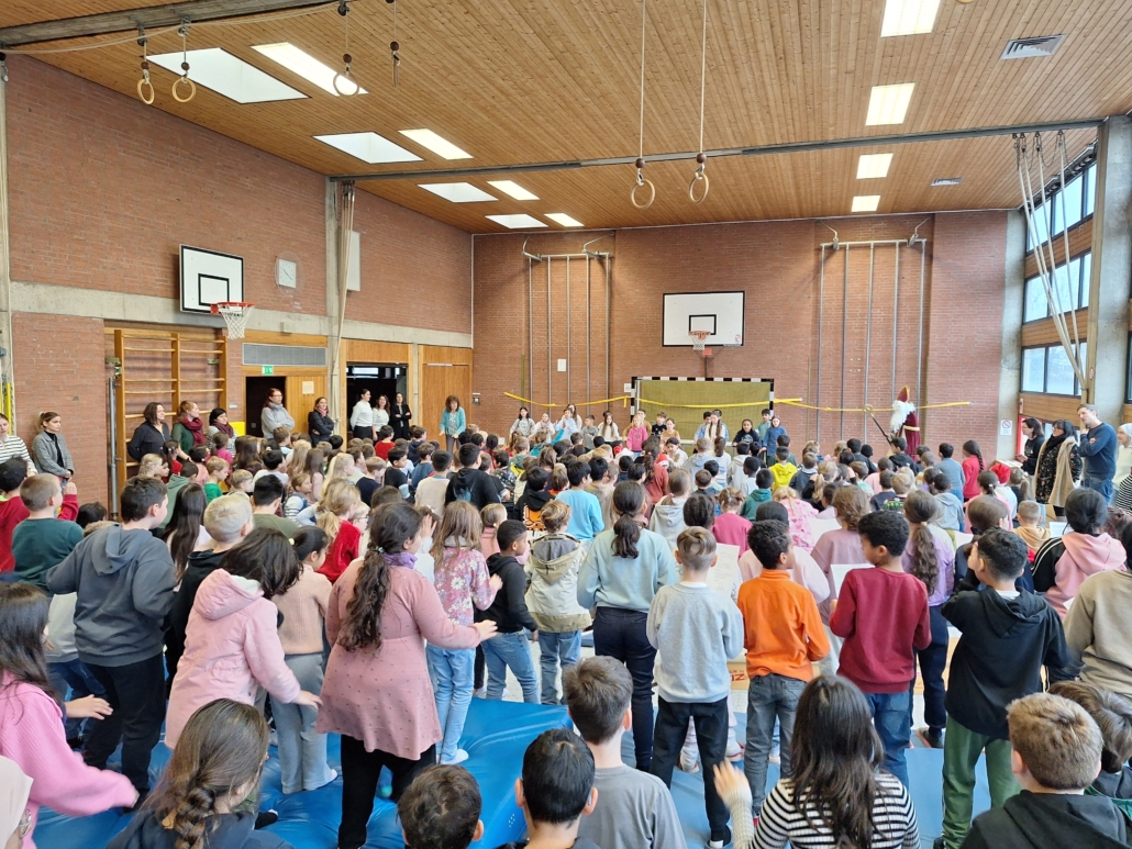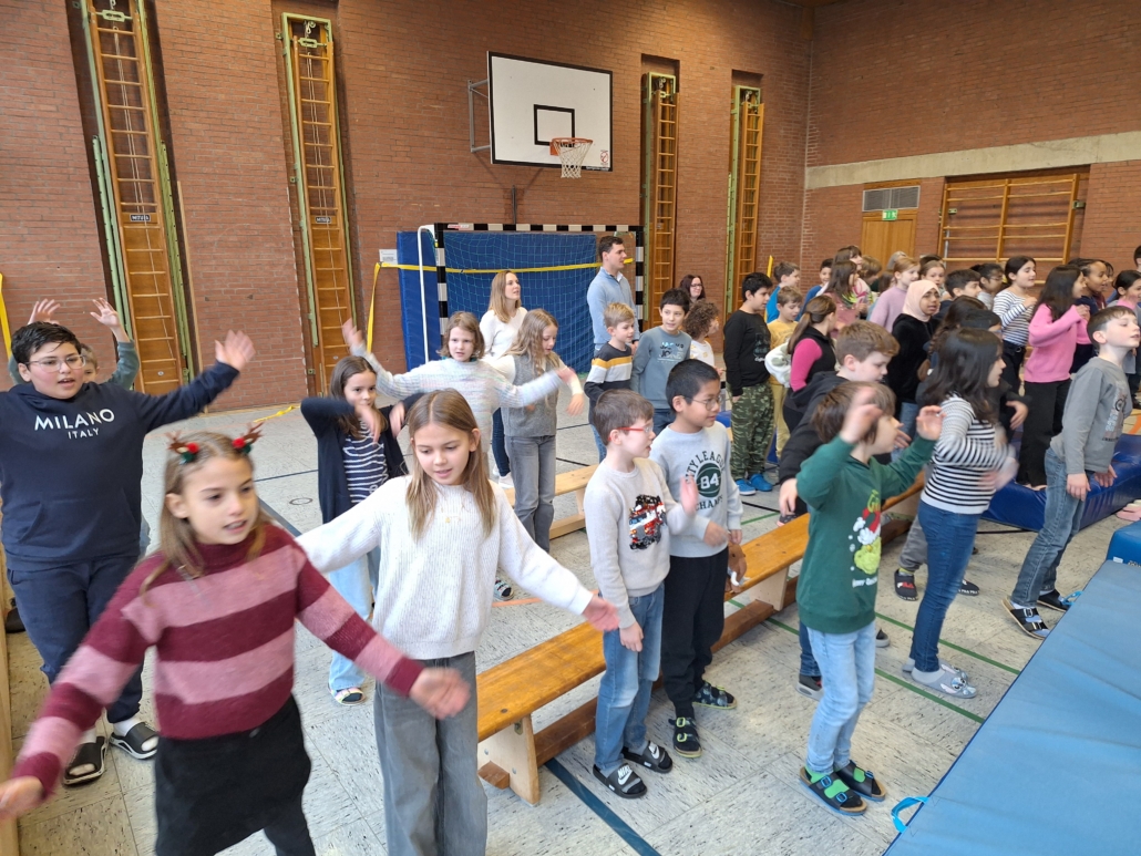 Am Freitag, den 05.12., war wieder große Aufregung in unserer Turnhalle angesagt – der Nikolaus hat seinen Weg zur Martinschule gefunden! Kaum hatte er seinen roten Mantel ausgeschüttelt, begrüßten ihn unsere Schülerinnen und Schüler mit einem so herzlichen und klangvollen Lied, dass selbst unsere sonst unerschütterliche Sekretärin Frau Achtzehn vor Rührung ein Tränchen verdrückte.