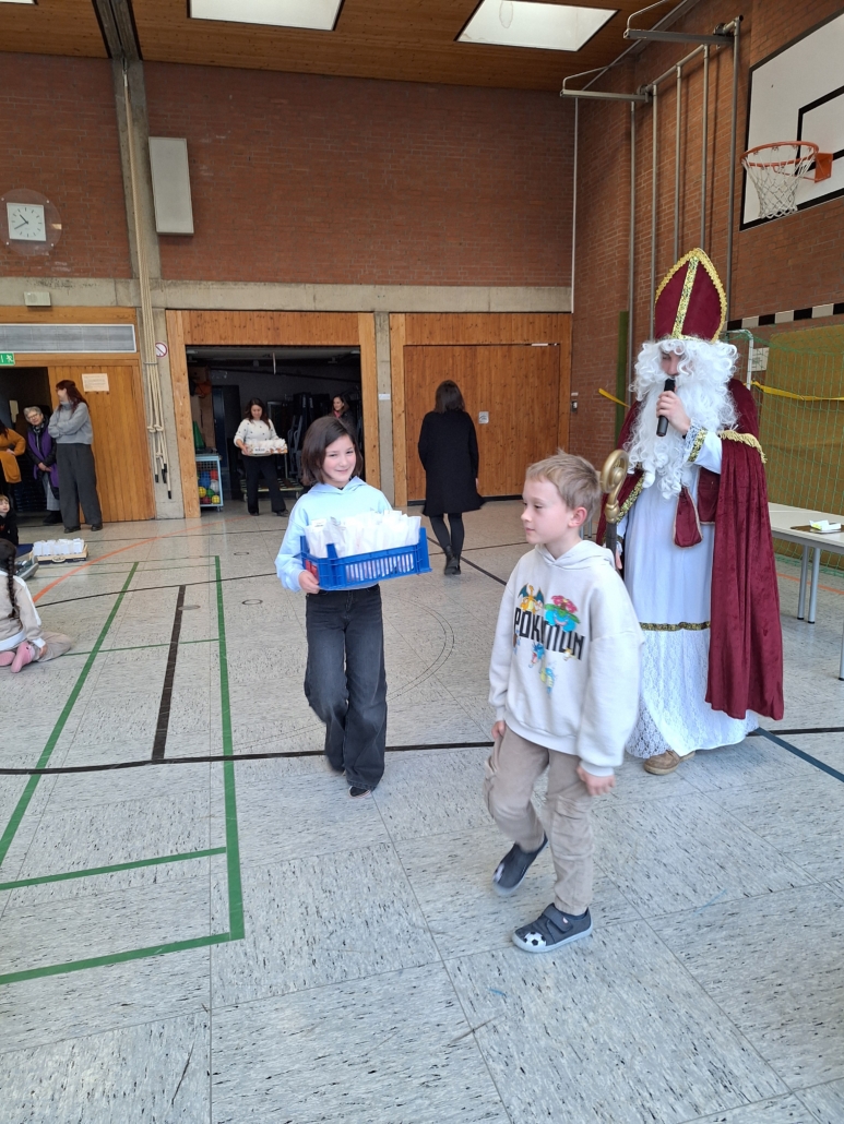 Ein besonderes Highlight: Die Klasse 4d trug dem Nikolaus ein Gedicht vor – so feierlich, dass sogar der Nikolaus ein wenig rot wurde (und das lag nicht nur am Mantel).